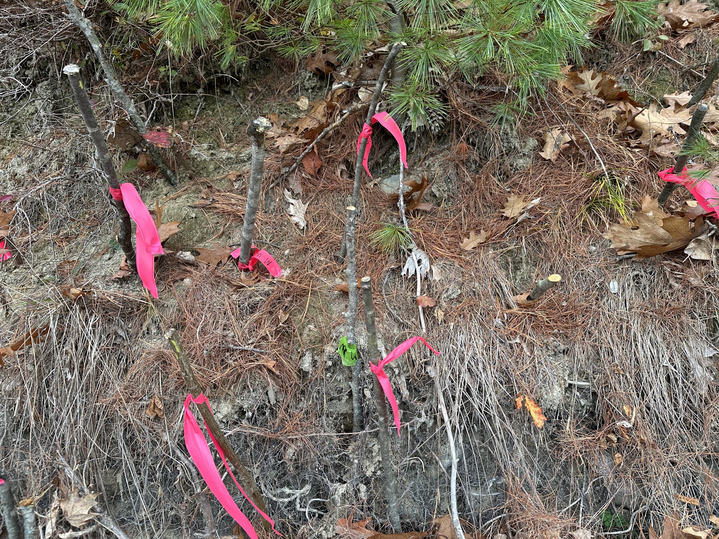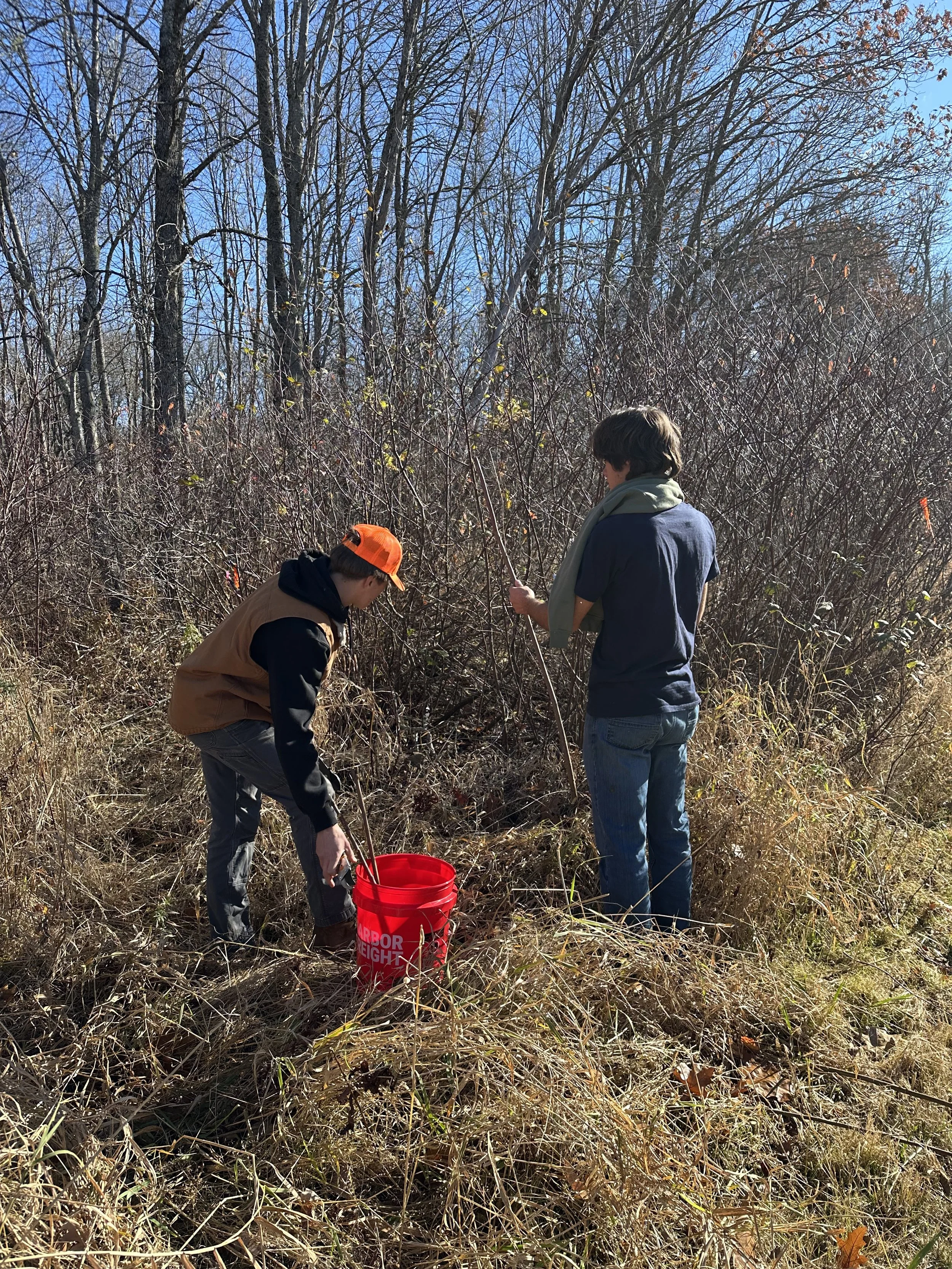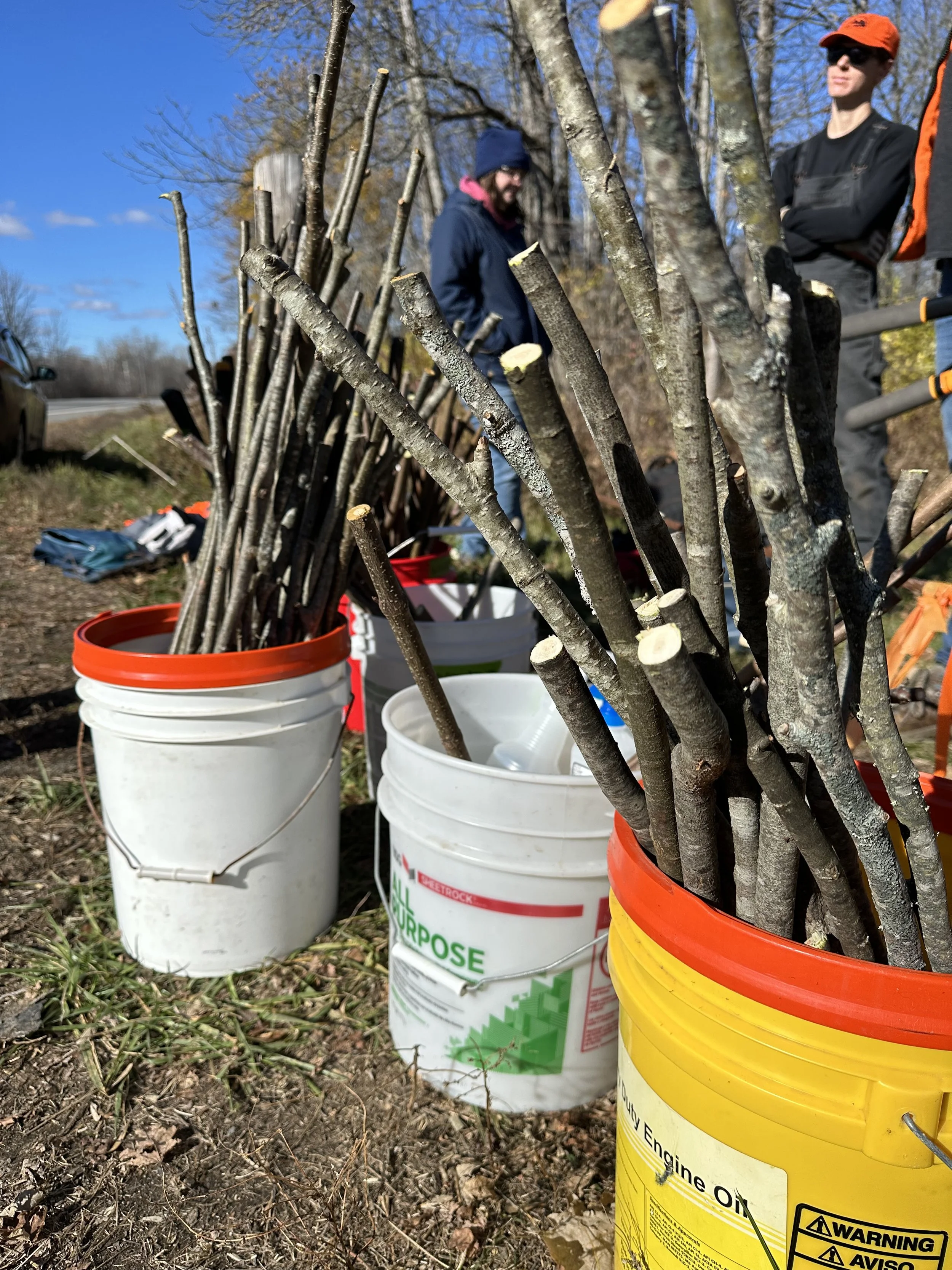 We selected native species that thrive under different conditions—some love the sun, while others prefer shade. We harvested our live stakes from the Moulton Mill Preserve along Twenty Five Mile Stream in Unity — a site rich with healthy native shrubs perfect for propagation.